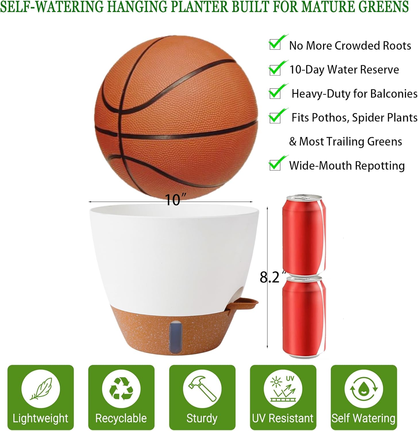 Hanging planters with water window, drainage holes, and removable reservoir. Perfect for healthy, low-maintenance indoor/outdoor plants