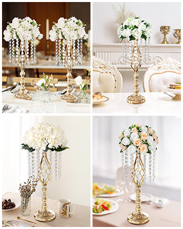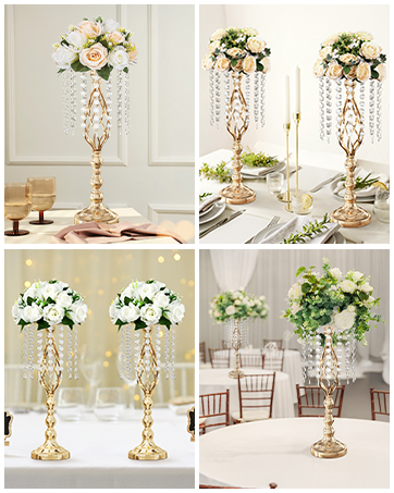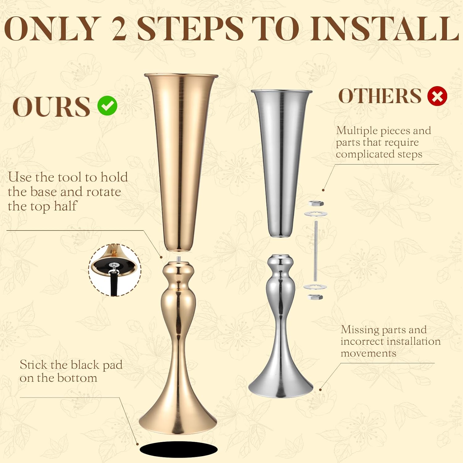 12 Pcs Tall Gold Trumpet Vases for Centerpieces & Wedding Tables - 21.65" Tall Gold Flower Vase Set with Weighted Base, Metal Trumpet Centerpieces for Tables (Bases para Centros de Mesa)