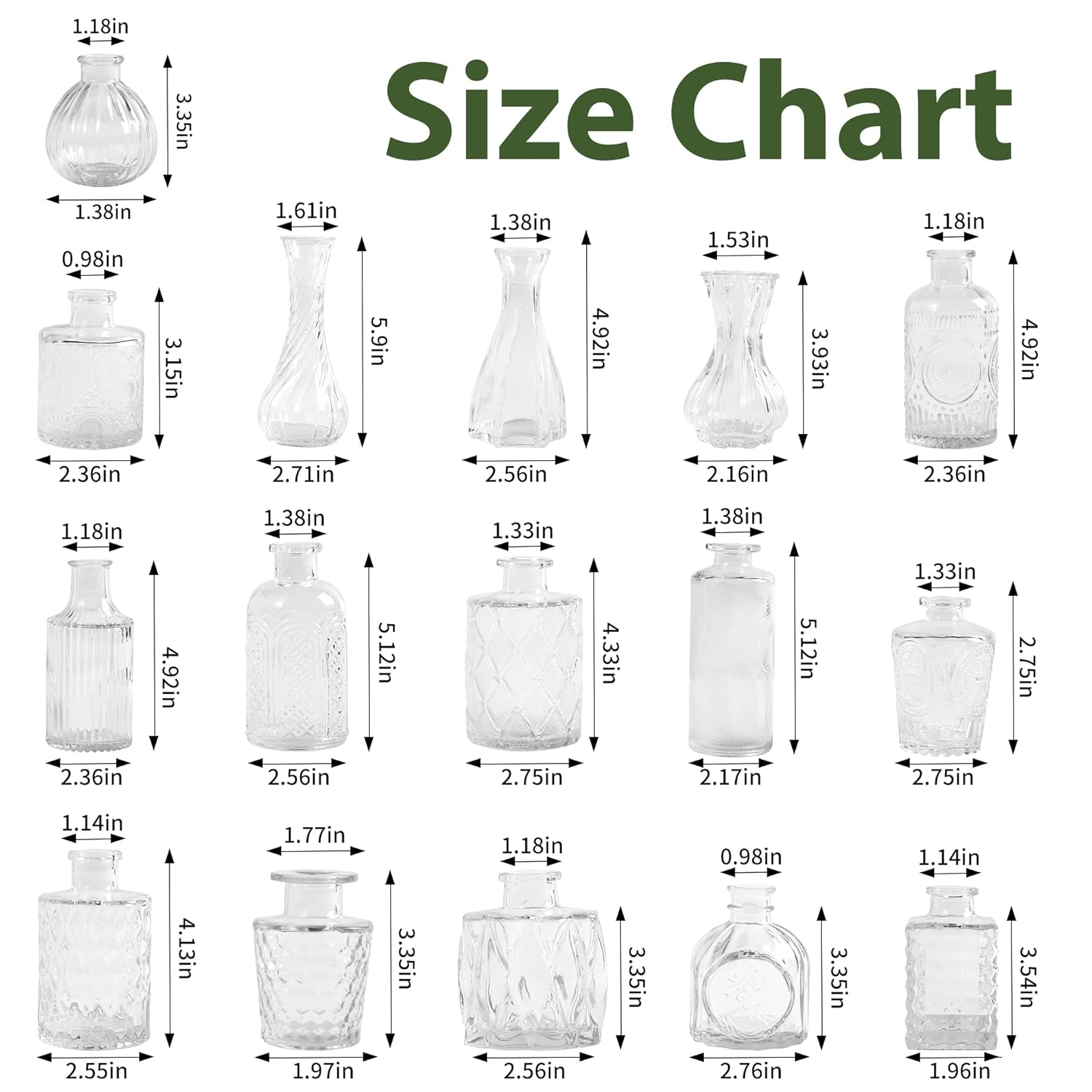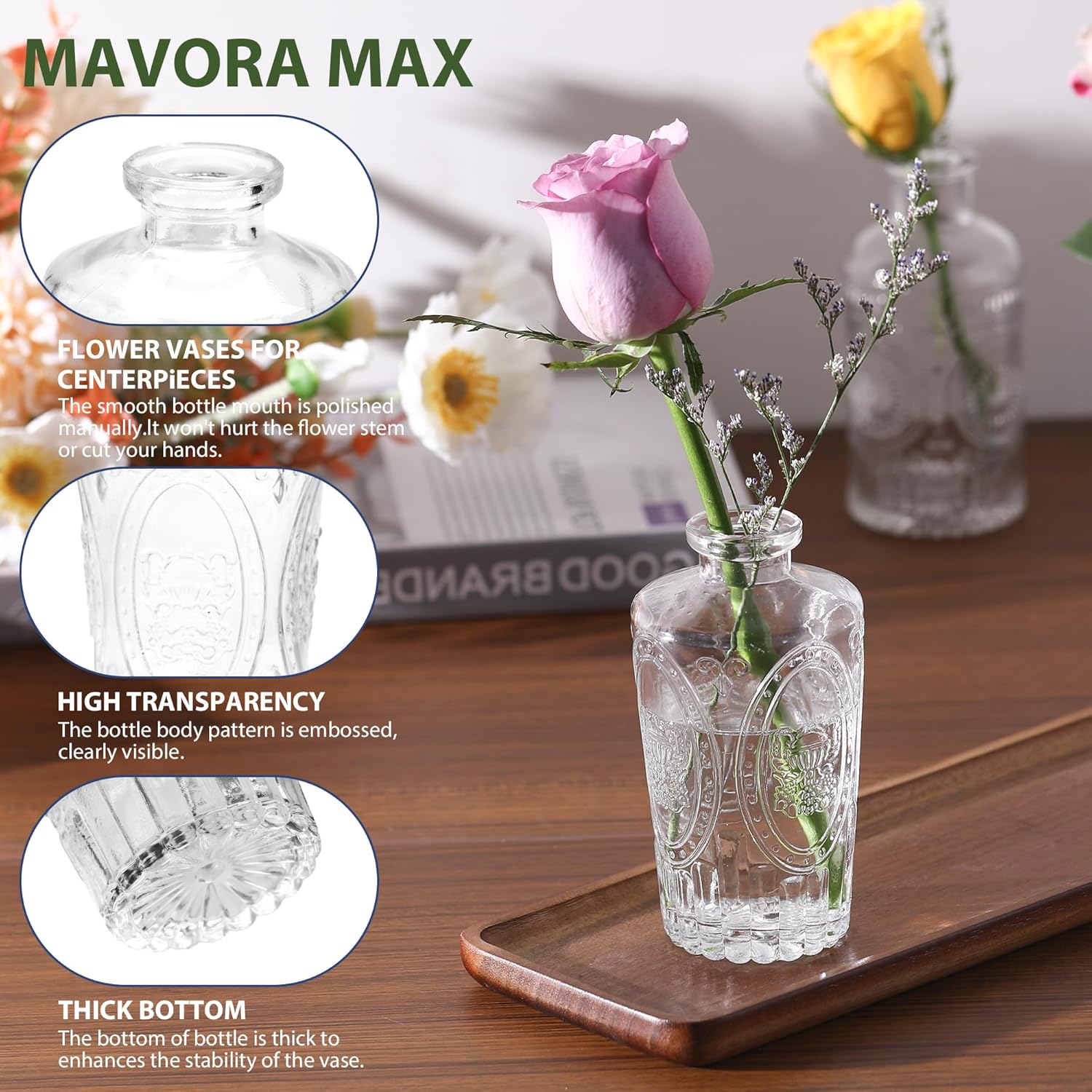 Clear Bud Vases Bulk 32,Small Flower Vases for Wedding,Glass Vintage Vase Set for Centerpieces,Recepetion,Home