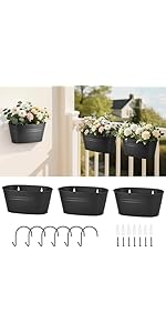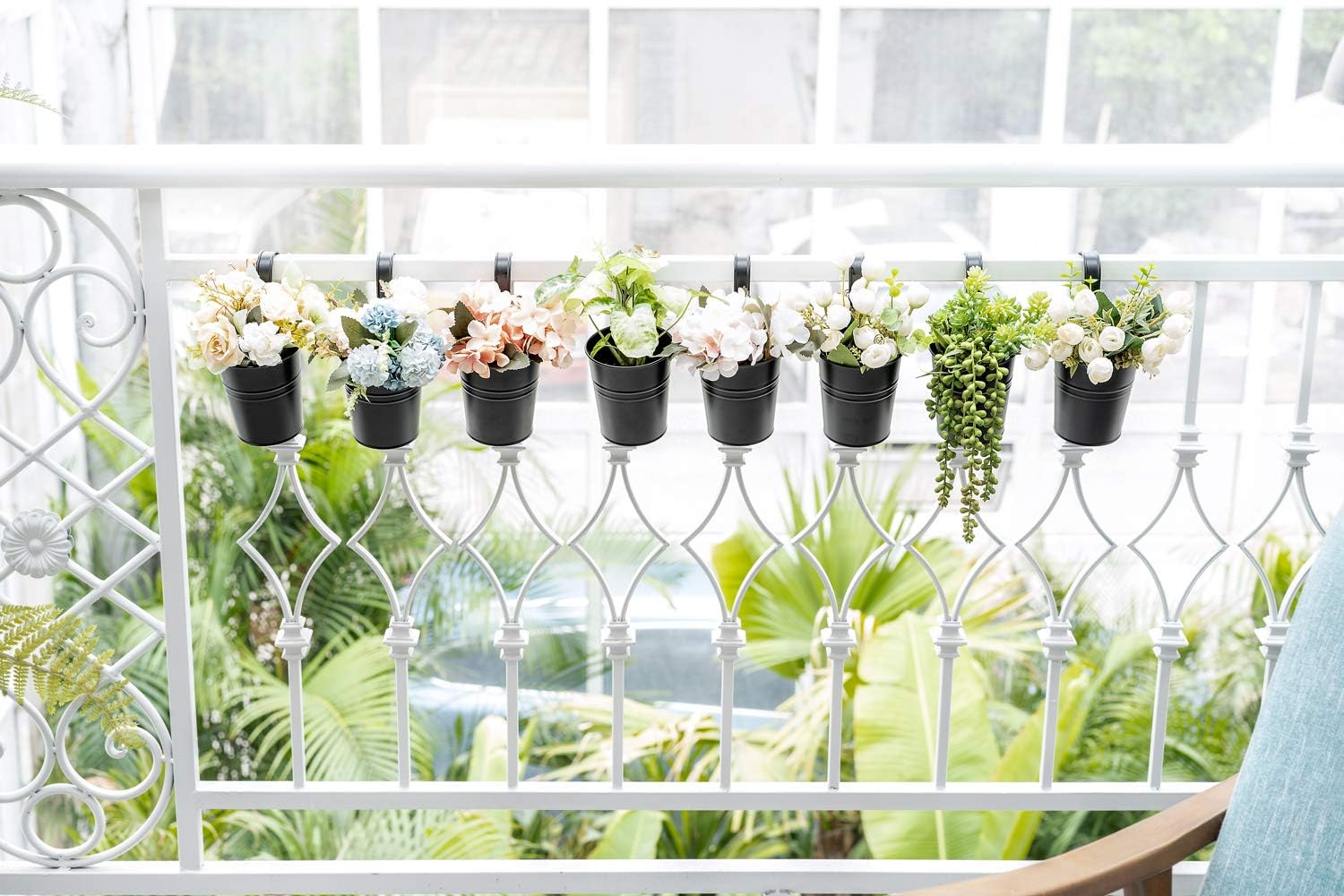 Dahey 10 Pcs Hanging Flower Pots Metal Iron Bucket Planter for Railing Fence Balcony Garden Home Decoration Flower Holders with Detachable Hooks, Black, 4 Inches