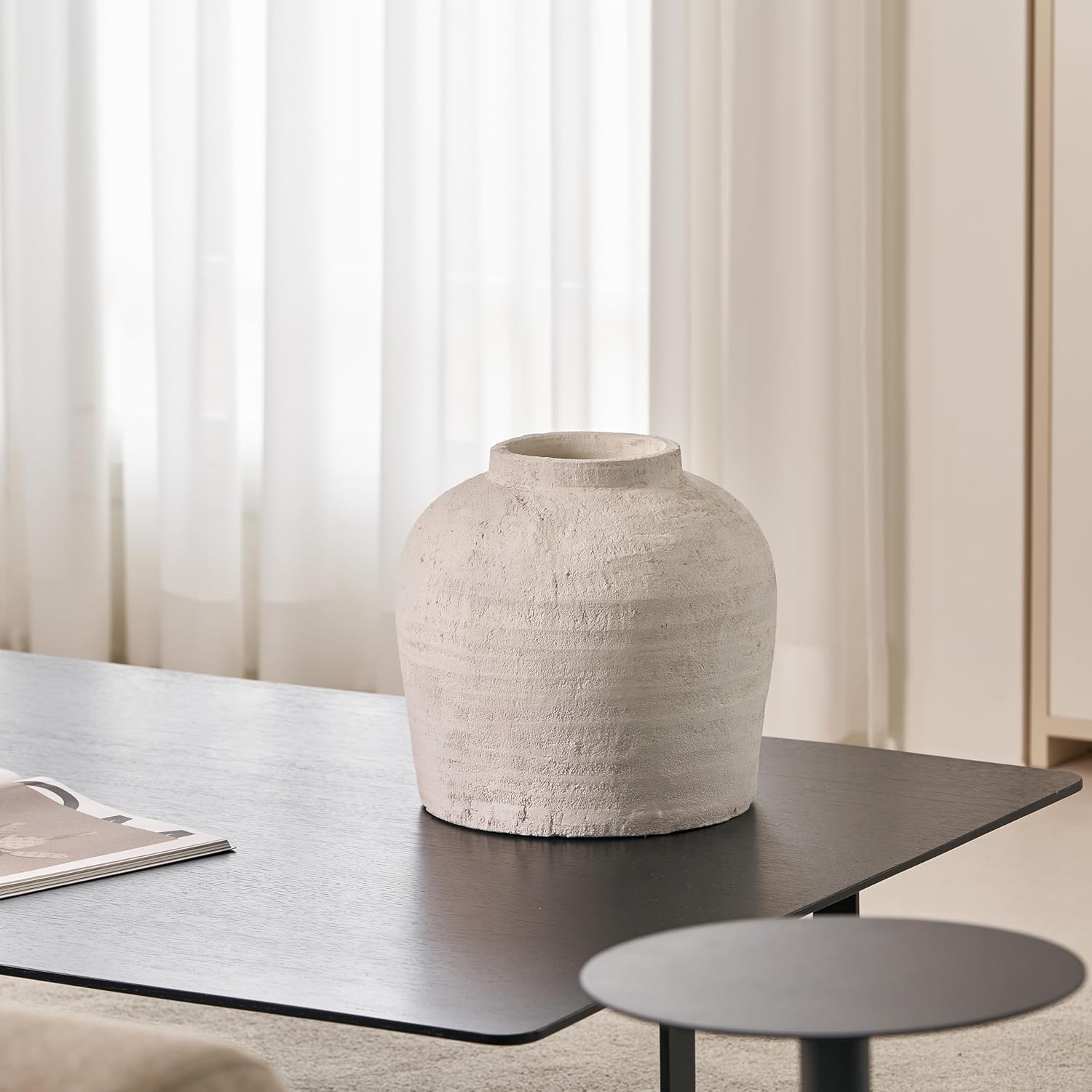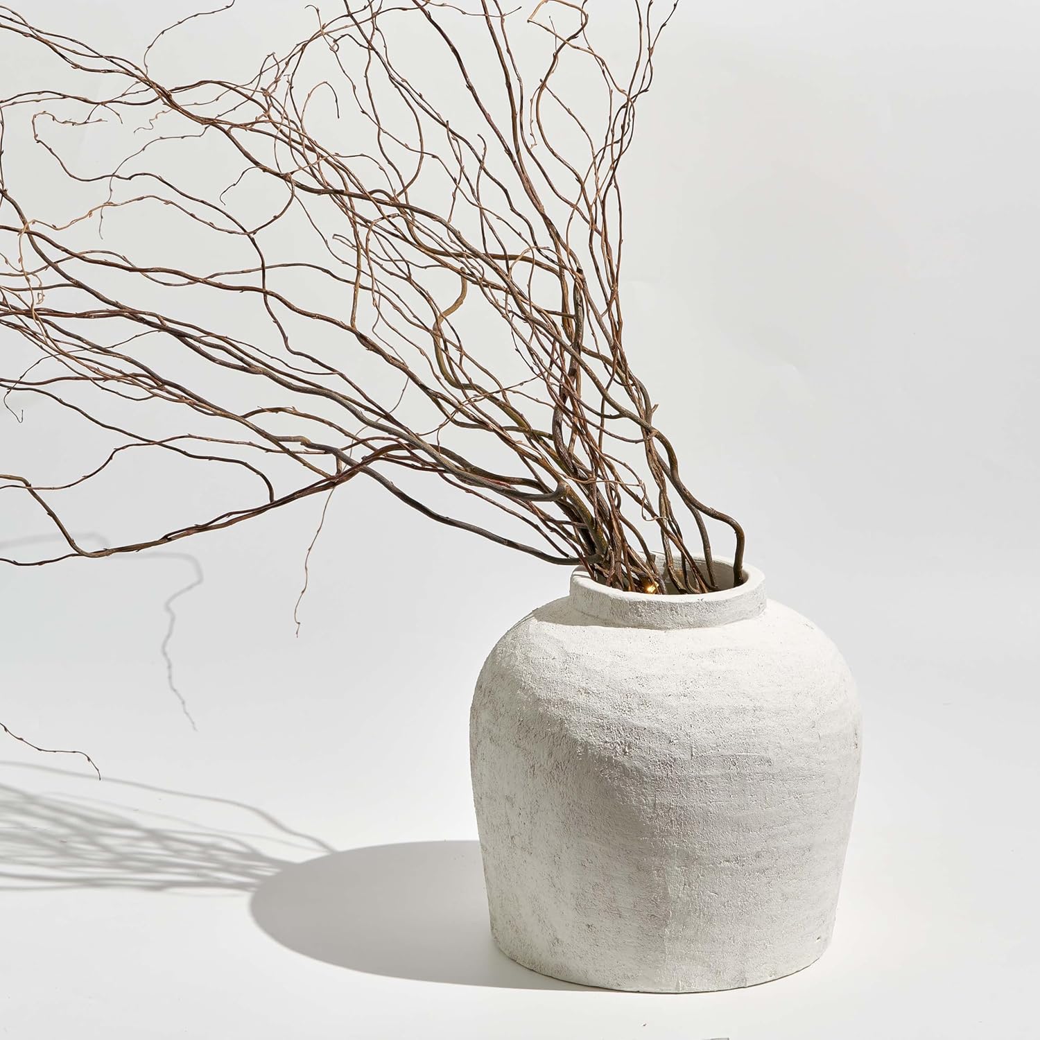 LB2 Large White Ceramic Vase, 11" Tall Zen Style Rustic vase, Terra Cotta Pitcher Vase, Distressed Farmhouse Decor, Pottery Decorative Flower for Home Decor (H 11" X 11")