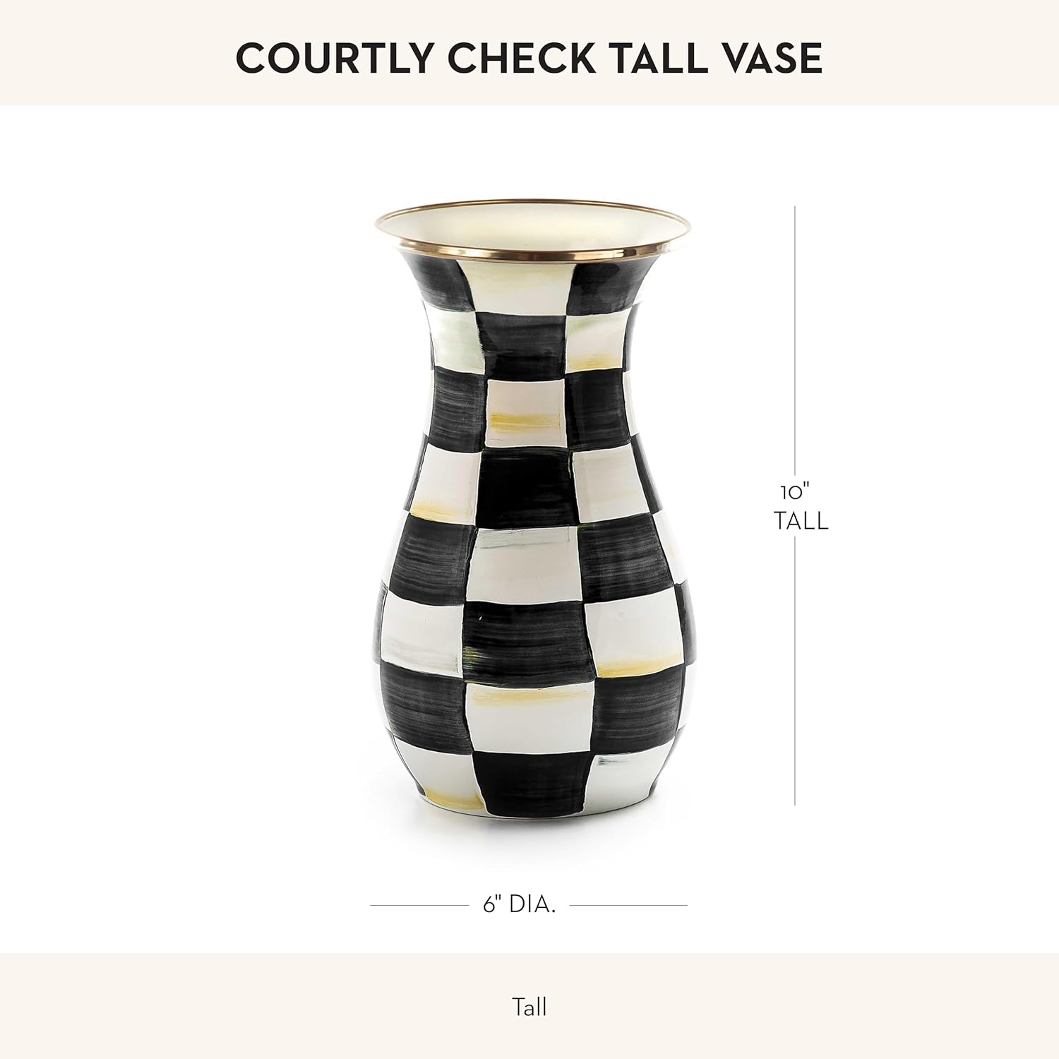 MACKENZIE-CHILDS Tall Enamel Vase, Unique Flower Vase, Decorative Table Decor for Living Room, Black-and-White Courtly Check
