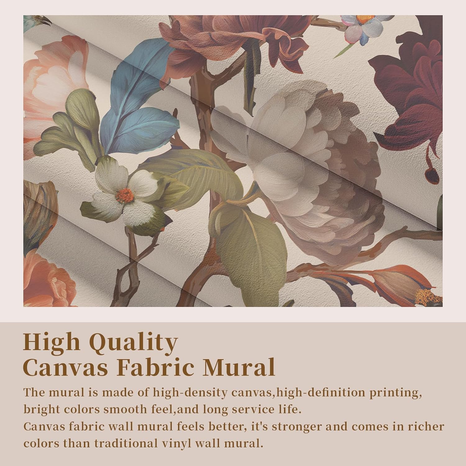 Zeeko Floral Peel and Stick Wallpaper Mural Beige Flower Wallpaper for Bedroom TV Background Large Wall Murals Wall Paintings Art Deco 98" H x 59" W (Covers 40 sq. ft.)