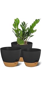 ZMTECH 8 Inch Hanging Planters for Indoor Outdoor Plants, 2 Pack Self Watering Hanging Plant Pots with Drainage Holes and Removable Saucer, Plastic Flower Hanging Pots with Watering Lip (Black)